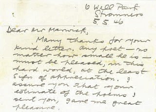We were surprised to see this letter from GMB to the writer, Ernest Marwick. It seems, that in 1946, GMB was living at 6 Well Park.