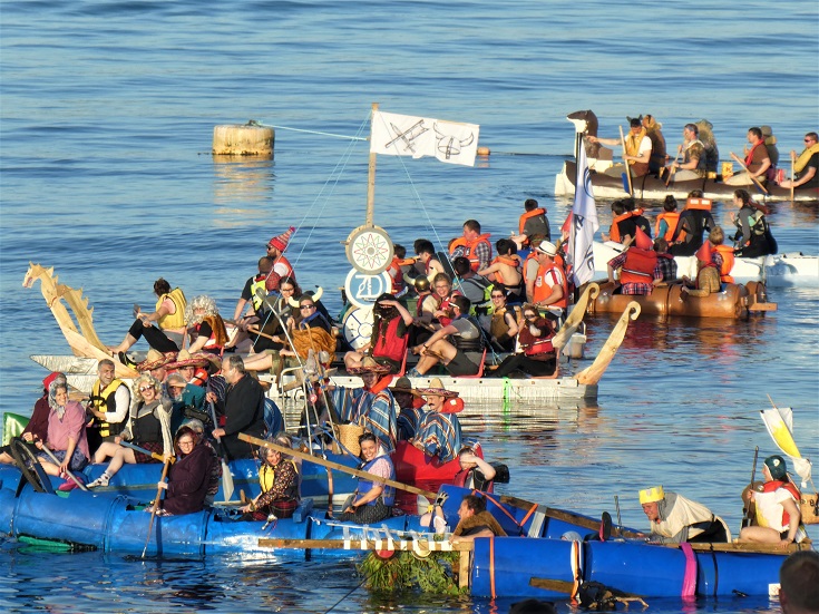 Once the Scrabster ferry arrived this evening, it was time for the Shopping Week Raft Race. A series of teams build their rafts on various themes, this year we saw Vikings, Mexicans, OAPs amongst others.