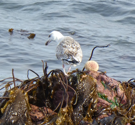 This young gull learning how to deal with a spiny sea urchin. Having seen urchin innards, I’m not sure if it’s worth the effort.