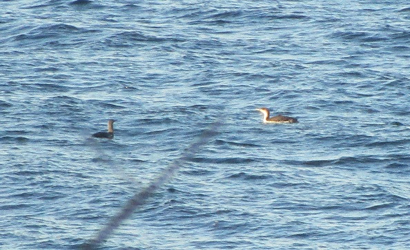 Spotted a pair of Red-throated Divers passing by the house this morning. Nice to see them in the harbour area. Picture is a bit fuzzy, camera phone not too good!
