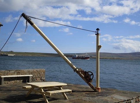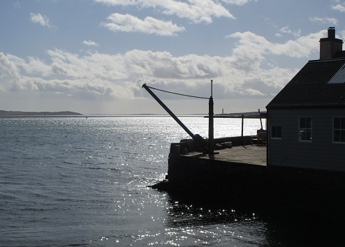 27th April – Graemsay ploughing past Hoy Low lighthouse. The old gun battery control tower can be seen to the right.