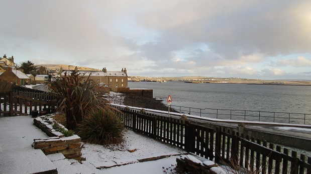 27th January – Enjoying the scene from the Citadel, this viewpoint looks south, out over the Stromness peninsula with the golf course and Ness Battery in the foreground.