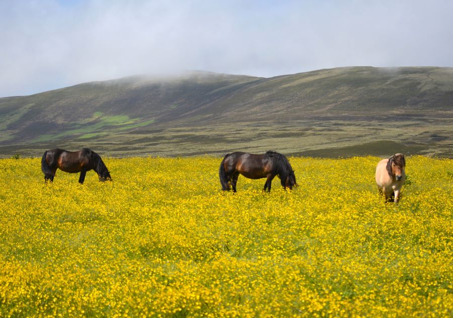 21st June – The warm, sunny weather is continuing unabated. We were passing through Orphir this afternoon and spotted these ponies enjoying the sunshine in a field of buttercups.