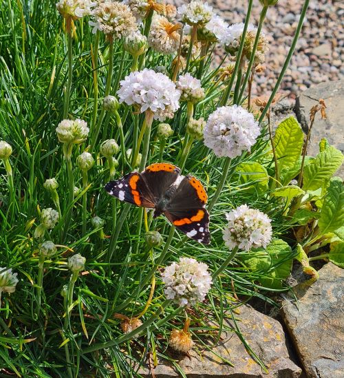 Nice to see a Red Admiral enjoying the nectar in the sea pinks. Things have been late flowering this year so the butterflies and bees have some catching up to do.