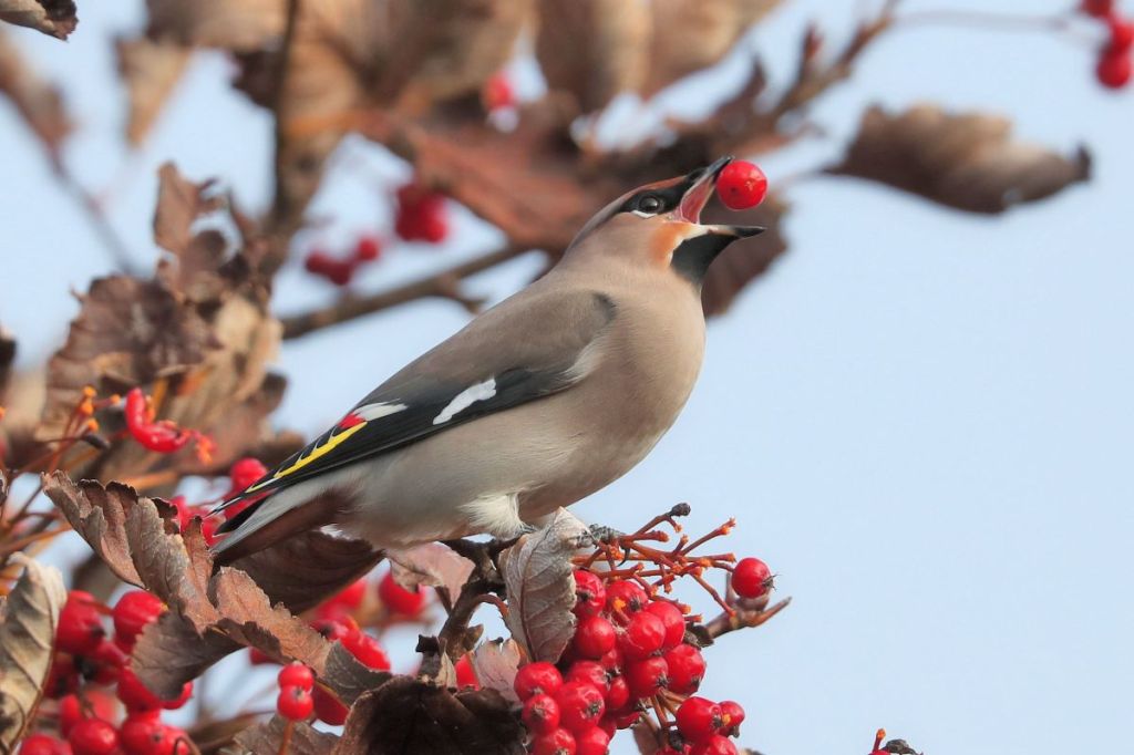 23rd October – I try to avoid using other peoples photos here but I think this is worth breaking that rule. Roger Houghton was visiting Baikies Stores in Finstown and spotted some waxwings in the bushes. This is an exceptional photo.