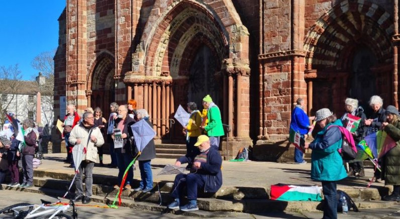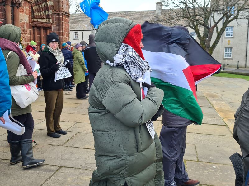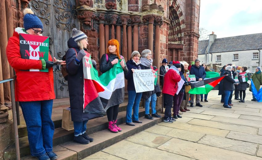 9th March – Sadly we are still maintaining our vigil for Gaza at St Magnus Cathedral. We’ve not missed a Saturday since early November. I think this was the warmest so far.
