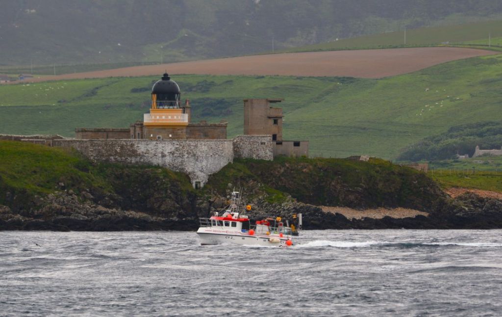 I’m not sure if the crew of this boat are rushing to vote but it’s hard working travelling against the ebb tide. Hoy Low lighthouse is keeping an eye on them.