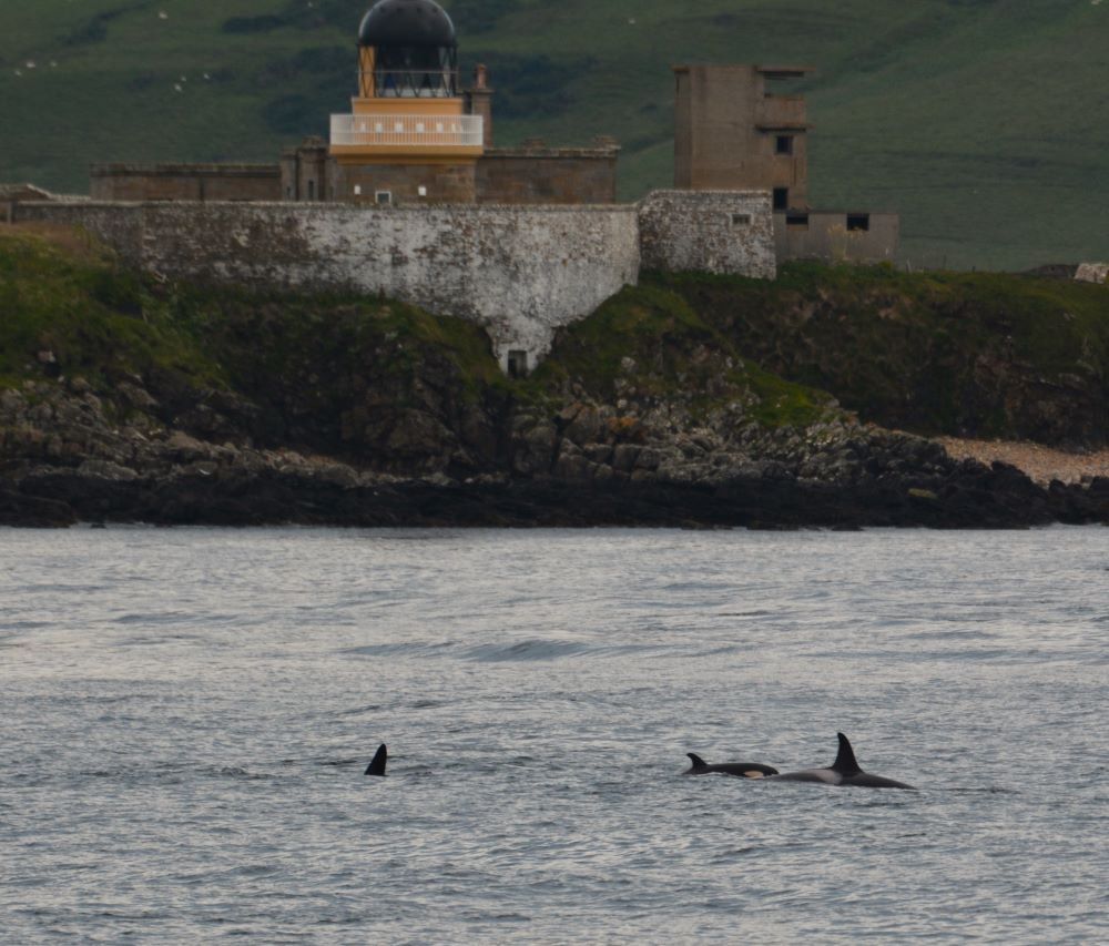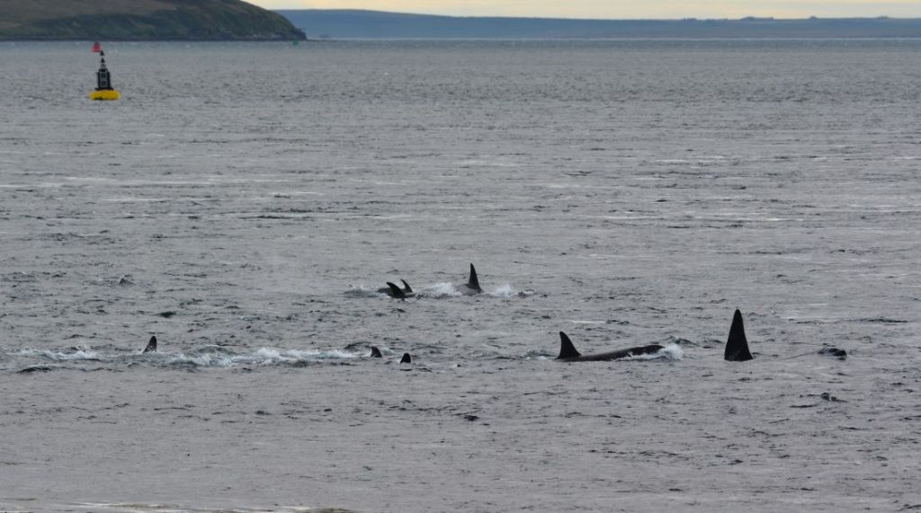 The day finished with a late phone call to say there were Orca heading towards Ness Point. So, with shoes untied, I dashed up to the Point just in time to catch them passing by.
