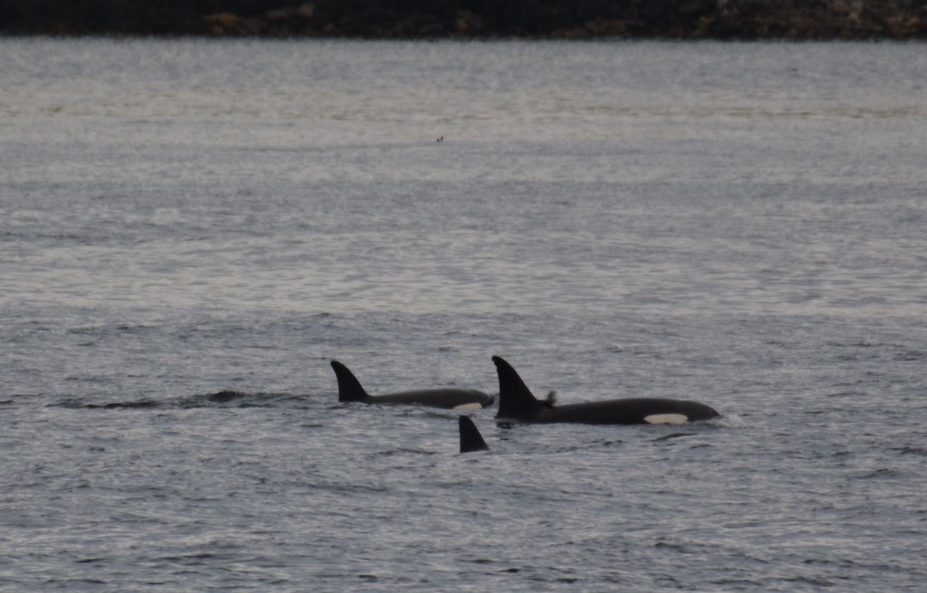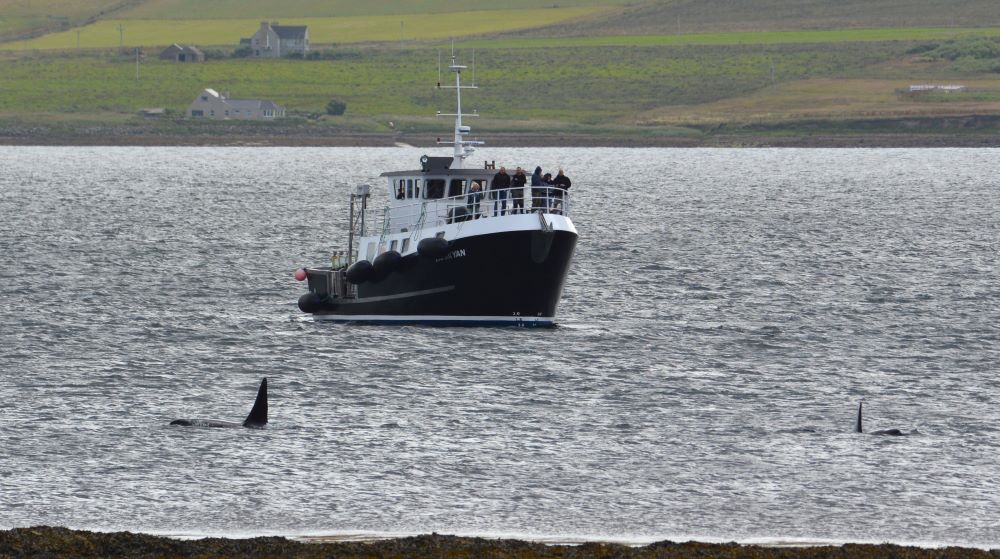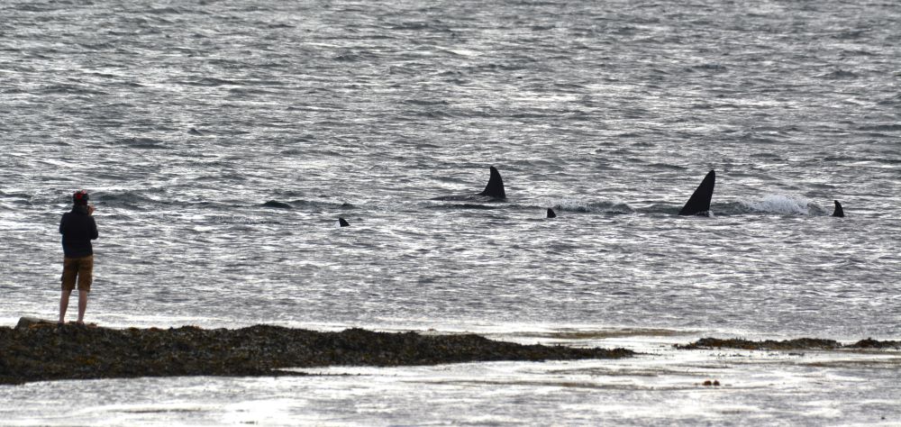 The original “heads-up” came from Emily Wade, the skipper on the dive-boat Huskyan. Here she is letting the divers watch the Orca, prior to getting into the water themselves. Rather them than me!