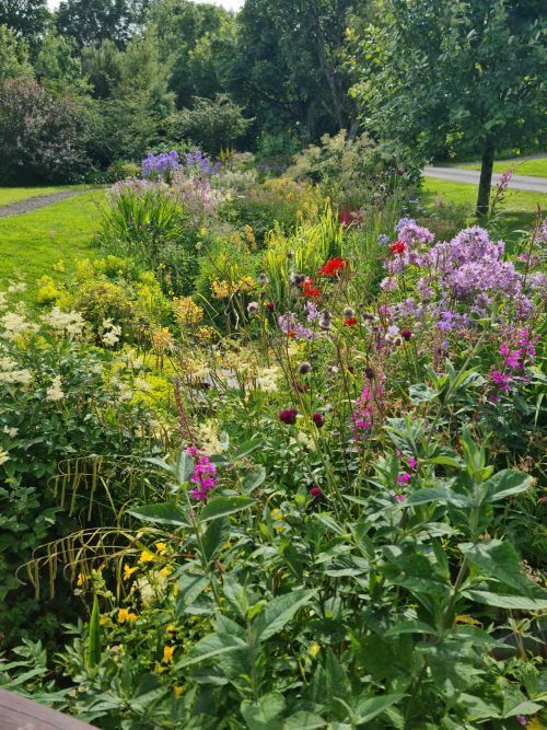 What a difference from our visit in April. There is an explosion of colour throughout the garden, in particular, the little stream bed is unrecognisable.