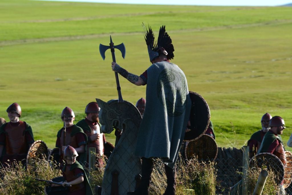 27th July – It’s the last day of Stromness Shopping Week and the Scalloway Jarl Squad passing by the local park couldn’t resist a photo opportunity on the kiddies longship.