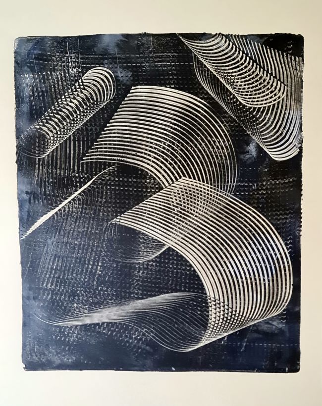 1st July – A bit of a dreich day to open July. I’ve been finding things to do around the house and H has been experimenting with her gel plate painting technique and producing interesting results.