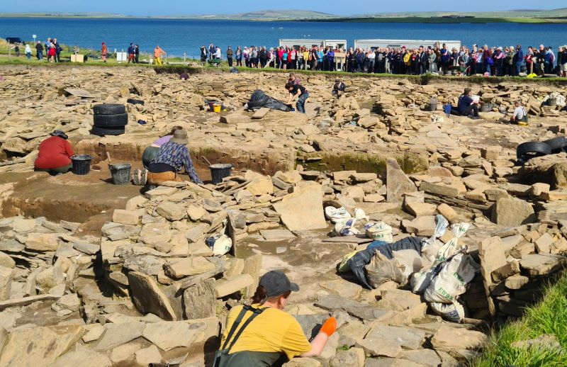 The work here has been the biggest archaeology project in Orkney for years and has been running since 2003. This final week is drawing large crowds, here a large group are being shown the works in progress.