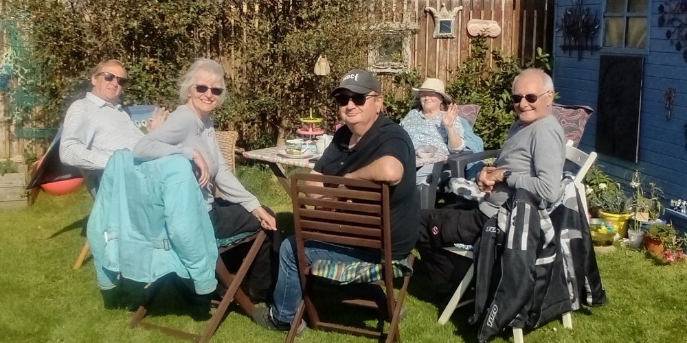 The day fulfilled its early promise and gave us a beautiful sunny afternoon. We were invited to tea and cakes in Terry and Judith’s garden in Dounby.