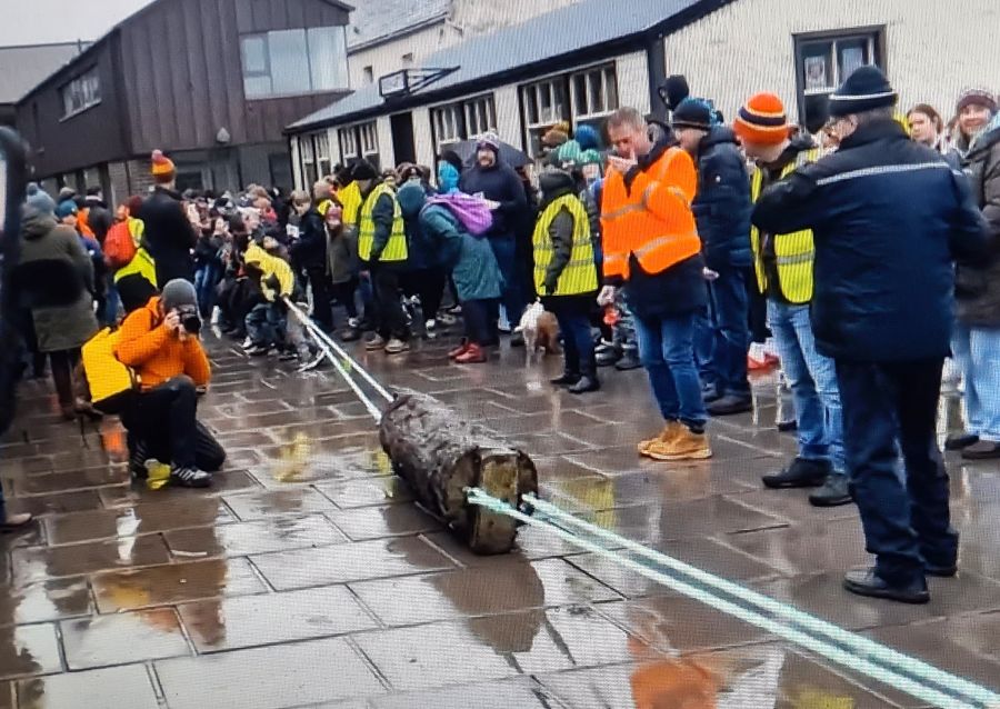 31st December 2024 – Hogmanay sees the annual log pull in Stromness. A team of Northenders vie with the muscle of the Soothenders to drag a piece of tree through the town.