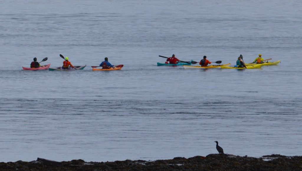 13th February – The spell of quiet, mild weather continues. No wind today and a very calm sea, enough to tempt the kayakers out.
