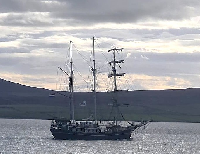 1st September – A regular visitor to Stromness is the Dutch barquentine Thalassa. A classic tall ship, it offers a range of cruises from educational to sail training. I didn’t notice it until it was departing. The pic into the grey morn isn’t great.