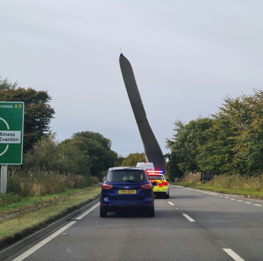 29th September – Things are never easy on the A9, we crawled along for a while behind this wind turbine blade, the police had a job on their hands, stopping traffic in both directions, as it meandered down the road, avoiding overhead cables.