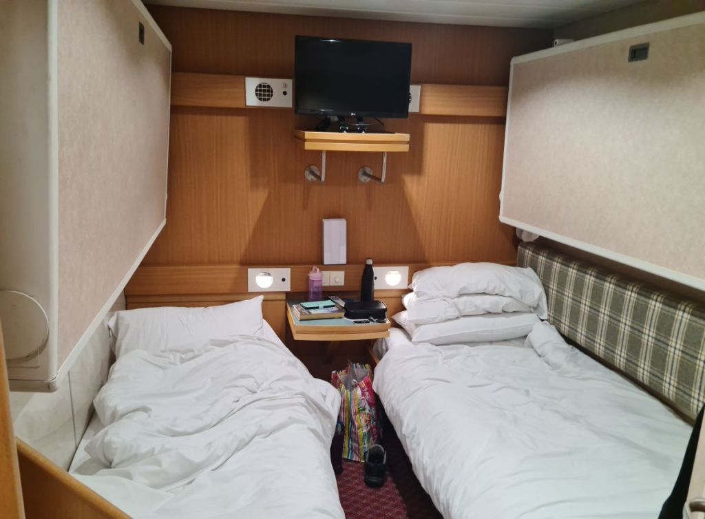 We managed to get a cabin for this trip, which makes a huge difference. It was a very “bouncy” voyage but we did get some sleep.