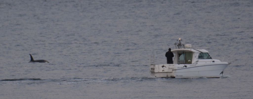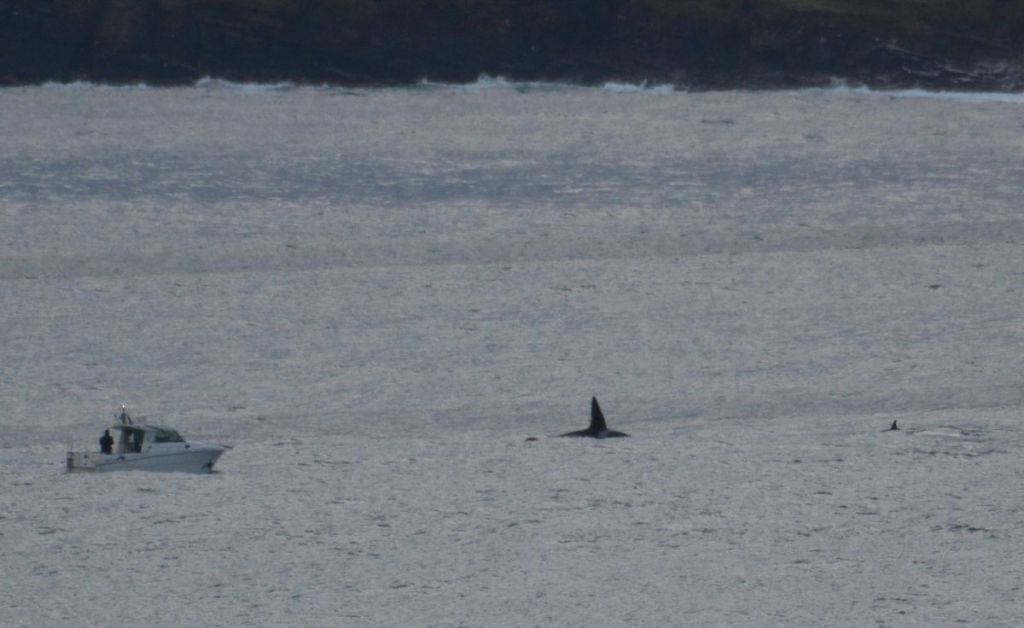 9th January – Amid some wintry flurries we did manage to spot a small group of Orca pass by Stromness. The usual culprit gets too close in his boat.