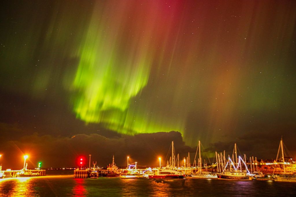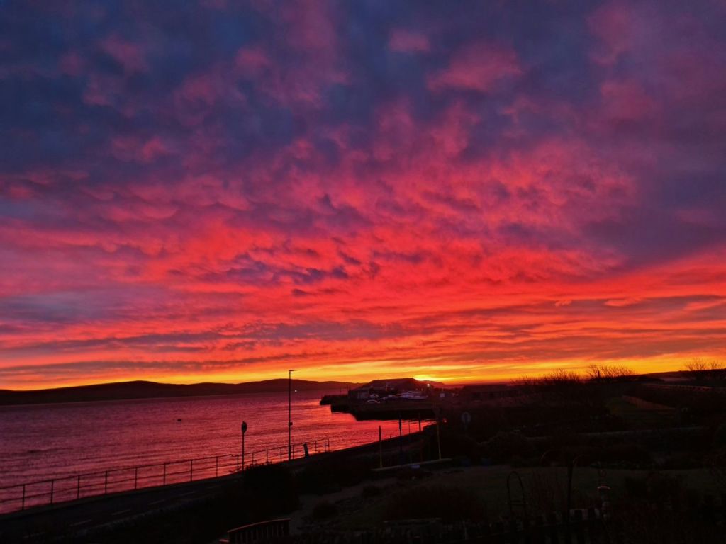 2nd January – Local chap, Graham Campbell, was on duty at Kirkwall harbour last night. He wasn’t complaining doing a New Year’s Day shift when he could see this from the office window.