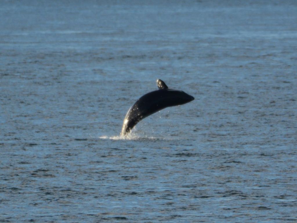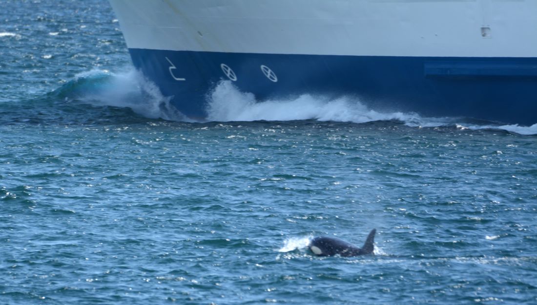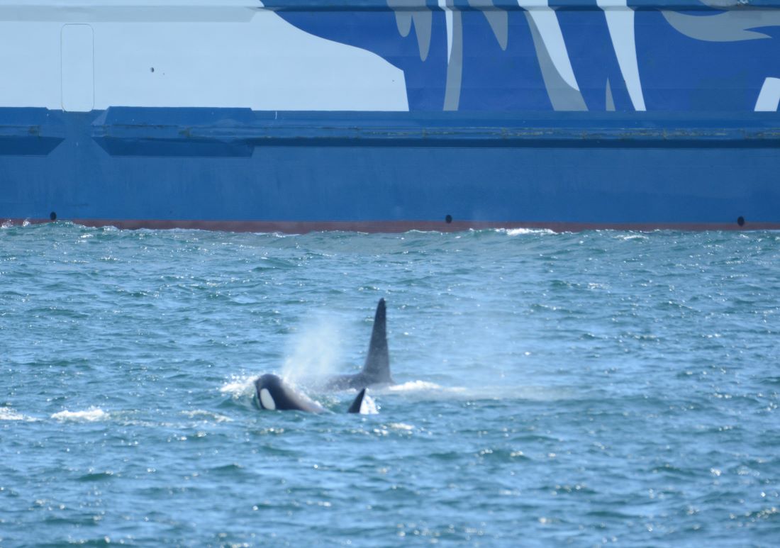 The original “heads-up” came from Emily Wade, the skipper on the dive-boat Huskyan. Here she is letting the divers watch the Orca, prior to getting into the water themselves. Rather them than me!