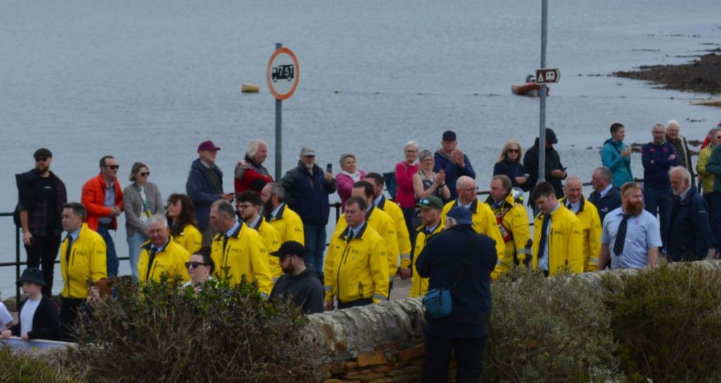 24th July – It’s Stromness Shopping Week and the festivities begin with the crowning of the Shopping Week Queen. This years Queen, Zara Johnston, and her entourage are being escorted along the pier, rather self-consciously, by the local lifeboat crew.