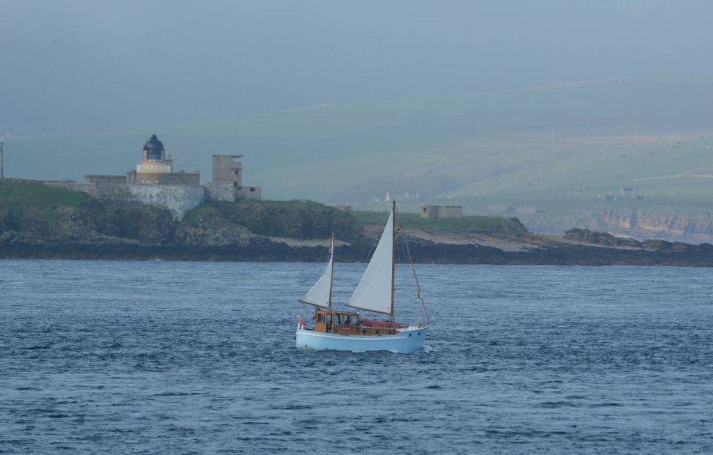 I’m not sure if the crew of this boat are rushing to vote but it’s hard working travelling against the ebb tide. Hoy Low lighthouse is keeping an eye on them.