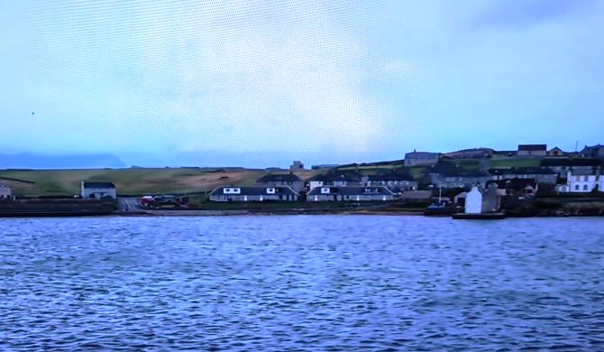 21st December – A stroll along the South Pier gives a good view of part of the Stromness waterfront, with the Pier Art Centre at the left. A Barbara Hepworth sculpture just visible in the courtyard.