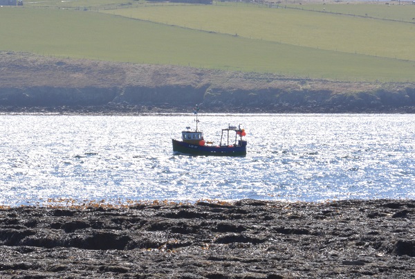 As we basked in the sunshine, a drama was unfolding. Local fishing boat Noronya was returning to Stromness and battling through a strong tidal race in the Sound when the engine cut out.