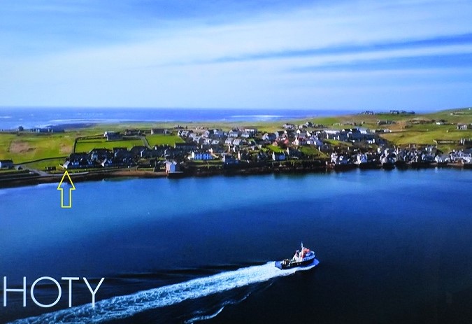 This shows the Graemsay ferry entering the harbour with Well Park arrowed. It’s only when you see these aerial shots that you realise how narrow the Stromness peninsula is.